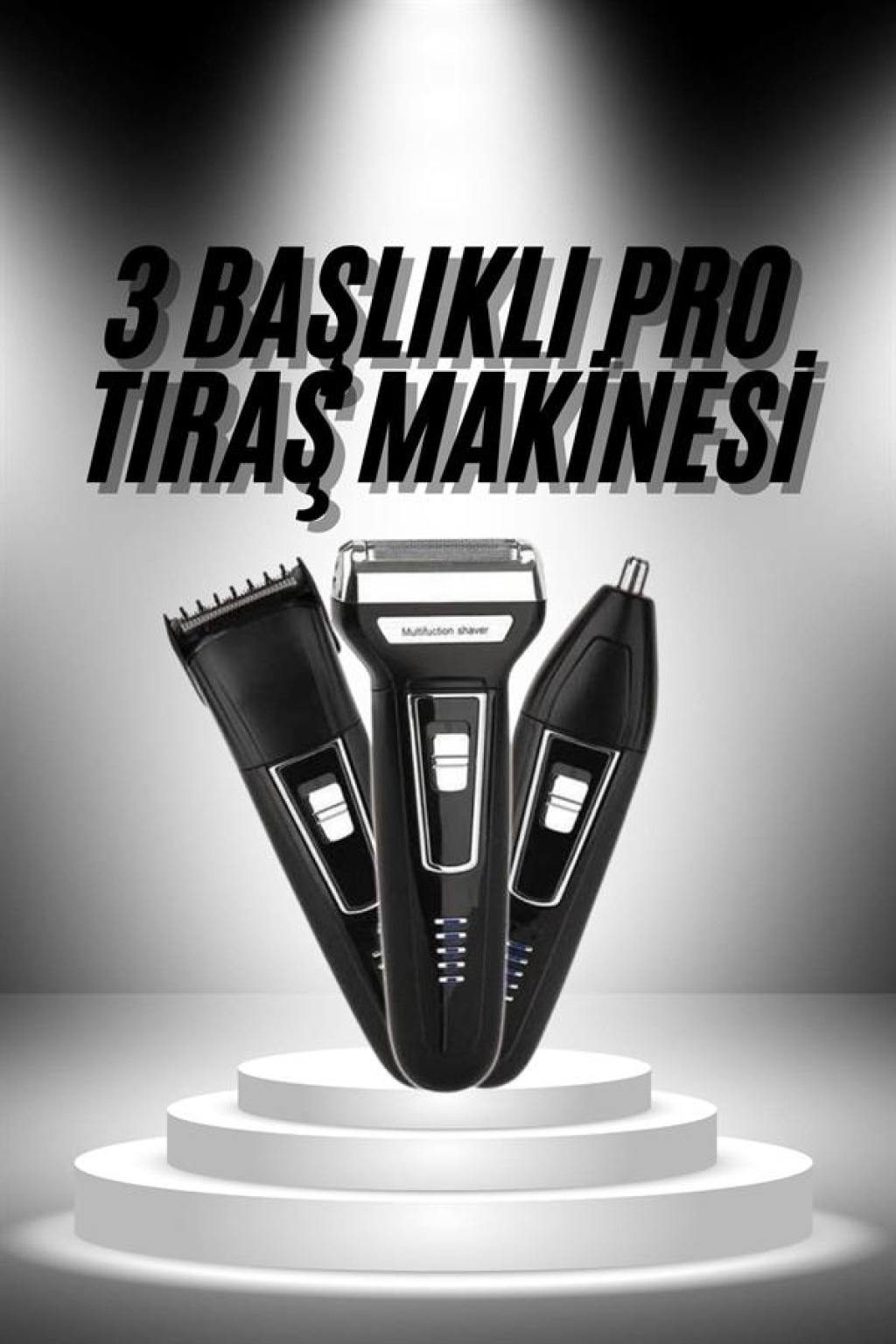 3'lü Set Saç Sakal Kesme Traş Makinesi Burun Kılı Alma Tıraş Makinesi