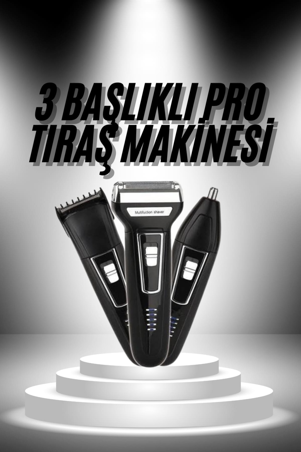 3'lü Set Saç Sakal Kesme Traş Makinesi Burun Kılı Alma Tıraş Makinesi