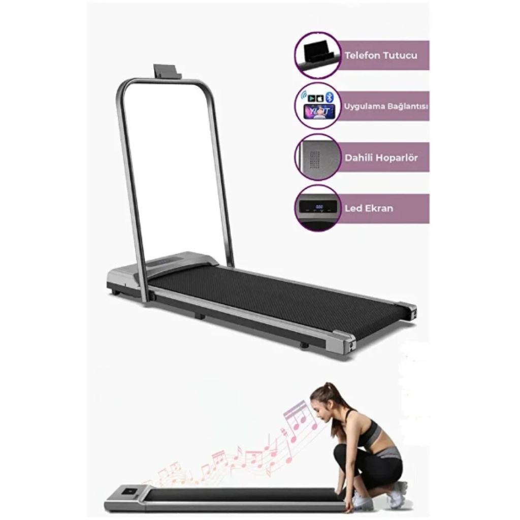 AKILLI KOŞU BANDIÜrün ÖzellikleriAkıllı Koşu Bandı, ev konforunda profesyonel koşu ve yürüyüş deneyimi sunmak için tasarlanmış modern ve teknolojik bir spor ekipmanıdır. Ultra sessiz motor yapısı sayesinde günün her saatinde çevreyi rahatsız etmeden spor yapmanıza olanak tanır. 120 kg taşıma kapasitesi ile geniş bir kullanıcı kitlesine hitap ederken, güçlü ve dengeli yapısı güvenli bir kullanım sağlar.Katlanabilir tasarımı sayesinde evde fazla yer kaplamaz ve kullanılmadığında kolayca kaldırılabilir. Üzerinde bulunan LED ekran hız, süre, mesafe ve kalori değerlerini anlık olarak takip etmenize yardımcı olur. Dahili hoparlör sistemi favori müziklerinizi açarak daha motive edici bir spor ortamı sunar. Akıllı uygulama bağlantısı ile kişisel antrenman verilerinizi kaydedebilir, gelişiminizi takip edebilir ve hedeflerinizi belirleyebilirsiniz.Telefon tutucu bölümü spor esnasında içerik izlemek, müzik dinlemek veya uygulamaları kontrol etmek için ekstra konfor sağlar. Minimalist ve modern tasarımı ile ev dekorasyonuna uyum sağlayarak yaşam alanınızı estetik bir spor alanına dönüştürür.Paket İçeriği1 adet akıllı koşu bandı