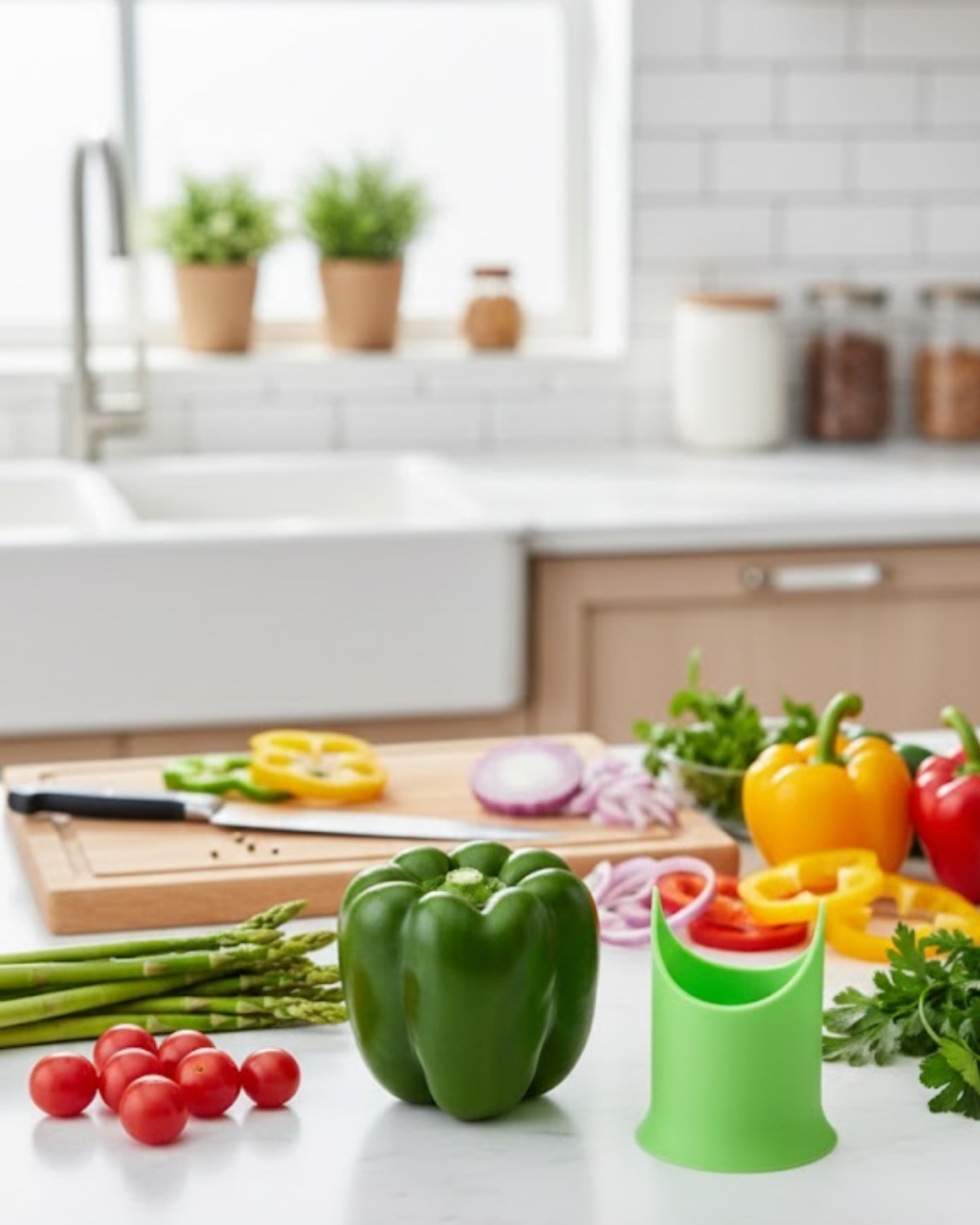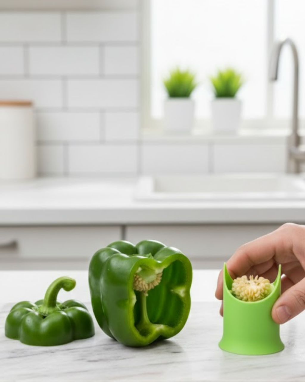 Pratik sebze oyucu aparat, biber ve kabak gibi sebzelerin içini kolayca temizlemek için tasarlanmıştır. Çekirdek ve iç lifleri tek parça halinde çıkararak dolma ve pişirme işlemlerini hızlandırır. Dağınıklık yaratmadan çalışır ve mutfakta temiz bir hazırlık alanı sağlar. Esnek silikon yapısı güvenli kullanım sunar ve sebzeye zarar vermez. Günlük mutfak işlerinde hız kazanmak isteyenler için kullanışlı ve fonksiyonel bir üründür.