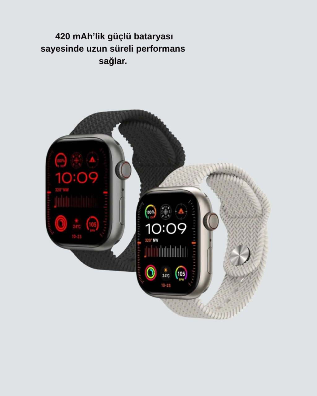 Bu gelişmiş akıllı saat, modern kullanıcıların günlük ihtiyaçlarına cevap verecek şekilde tasarlanmış güçlü ve çok yönlü bir modeldir. En önemli özelliklerinden biri, kablosuz şarj desteğidir. Kablo aramakla uğraşmadan, cihazı şarj pedi üzerine yerleştirerek kolayca şarj edebilirsiniz. 420 mAh kapasitesindeki bataryası, uzun süreli kullanım için yeterli performansı sağlar ve yoğun kullanımda bile gün boyu destek sunar.Android ve iOS uyumluluğu sayesinde cihaz, her kullanıcı için erişilebilir bir teknoloji hâline gelir. Gelişmiş Bluetooth 5.2 bağlantısı, hızlı eşleşme ve kesintisiz veri aktarımı sağlar. Saat üzerinden direkt arama yapabilir, gelen çağrıları cevaplayabilir veya reddedebilir; tüm bildirimleri anında görüntüleyebilirsiniz. Ekranda beliren kırmızı bildirim simgesi, önemli uyarıları gözden kaçırmanızı engeller.Cihazın entegre sesli asistan desteği, kullanıcılara büyük bir kolaylık sağlar. Eller kullanılamadığında, spor yaparken, araçta veya evde yalnızca ses komutlarıyla işlemlerinizi yönetebilirsiniz. Bu özellik, akıllı saati adeta kişisel bir dijital asistana dönüştürür. Saat üzerinden hava durumunu öğrenebilir, not ekleyebilir, müzik değiştirebilir veya tamamen eller serbest şekilde aramalarınızı yönetebilirsiniz.Model, sadece fonksiyonel değil aynı zamanda eğlenceli özellikler de sunar. İçerisindeki mini oyunlar, kısa molalarda keyifli zaman geçirmenize olanak tanır. Ayrıca gece lambası modu, hafif ve yumuşak ışığı sayesinde başucu aydınlatması olarak kullanılabilir.Şık tasarımı, ergonomik yapısı, yüksek ekran çözünürlüğü ve modern arayüzü ile bu akıllı saat, hem günlük yaşamı kolaylaştırır hem de stil sahibi bir aksesuar olarak öne çıkar. Spor, çalışma, sosyal hayat ve iletişim ihtiyaçlarını tek bir cihazla karşılayarak kullanıcıya gerçek bir günlük hayat asistanı deneyimi sunar.