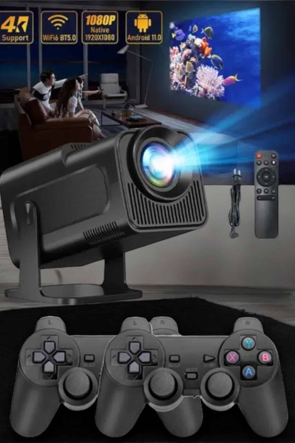 Taşınabilir Eğlence Merkezi – Android Projeksiyon Game BoxBu kompakt projeksiyon cihazı, 1280*720p çözünürlüğü ve üstün görüntü kalitesiyle film izlemekten oyun oynamaya kadar her türlü eğlenceniz için mükemmel bir seçenek. Bluetooth özelliği ve çift kollu tasarımıyla 2000’den fazla oyun seçeneği sunar. HDMI, USB ve diğer bağlantı noktaları sayesinde televizyon, bilgisayar ve oyun konsollarıyla kolayca bağlantı kurabilirsiniz. Uzun ömürlü lambası ile enerji tasarrufu sağlayan bu cihaz, her ortamda eğlenceyi yanınızda taşımanızı mümkün kılar.