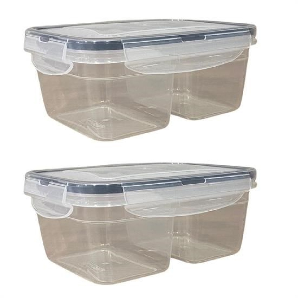BUFFER® 2 Bölmeli 0,45+0,45 Litre Kilitli Kapaklı Erzak Saklama Kabı Diyet Saklama Kabı Taşınabilir Beslenme Kabı