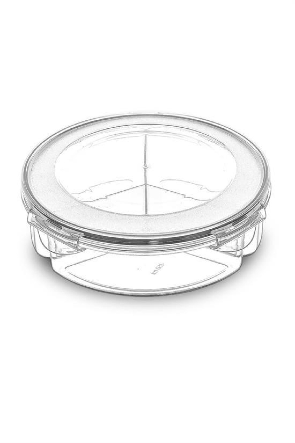 BUFFER® 3 Bölmeli Kilitli Kapaklı 1,35 Litre Yuvarlak Erzak Saklama Kabı Diyet Saklama Kabı Taşınabilir Beslenme Kabı