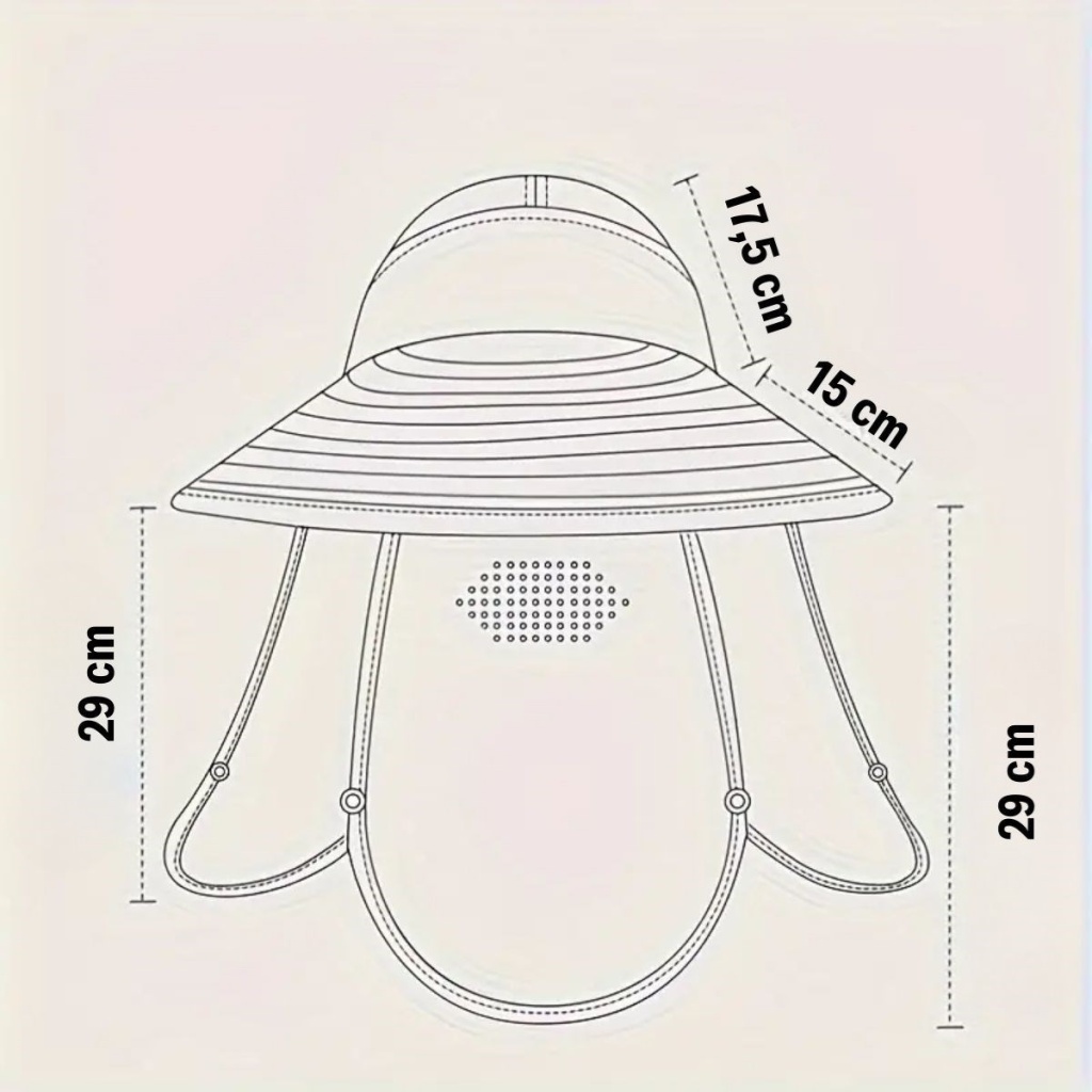 BUFFER® Güneş Koruyuculu Nefes Alabilen Maskeli ve Boyun Kapaklı Geniş Kenarlı Balıkçı Şapkası