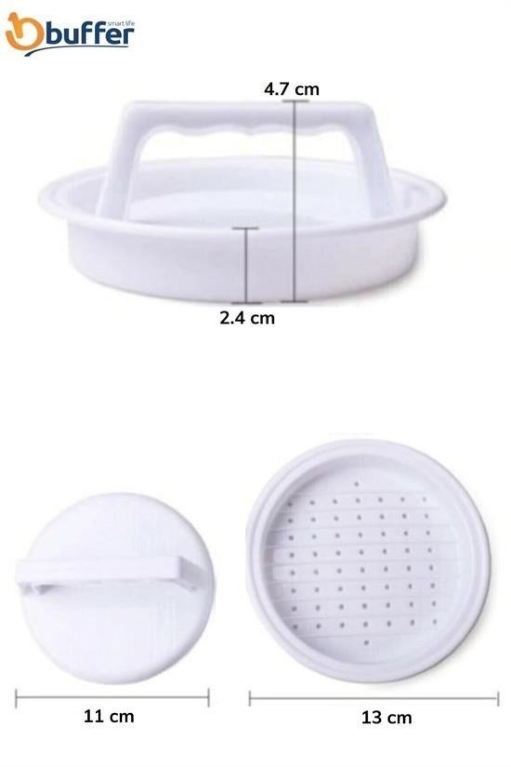Hamburger ya da Köfte malzemelerini kalıbın içine ekleyin ve pres aparatıyla bastırınız Çok kolay bir şekilde köfte/hamburgeriniz şeklini alır ve pişirmeye hazır olur Afiyetle yiyebilirsiniz