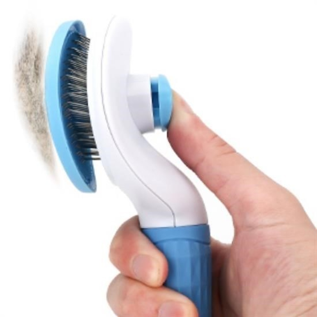 BUFFER® Kedi Köpek Tüy Toplayıcı Kendini Temizleyebilen Ergonomik Saplı Kullanımı Rahat Kaymaz Evcil Hayvan Tarağı Mavi