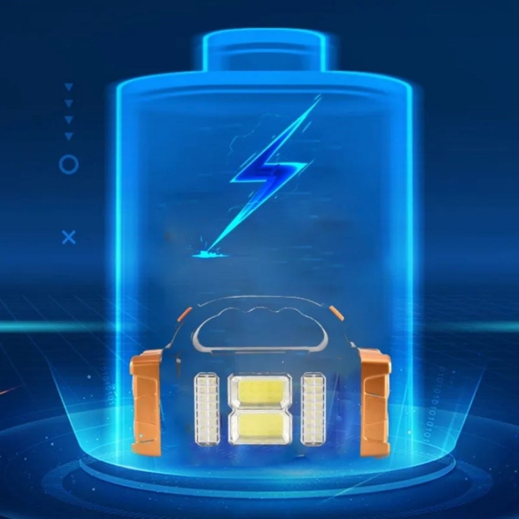 BUFFER® Solar ve USB Şarjlı LED + COB El Feneri | 1500 mAh Şarjlı Taşınabilir Çalışma Işığı-Su Geçirmez