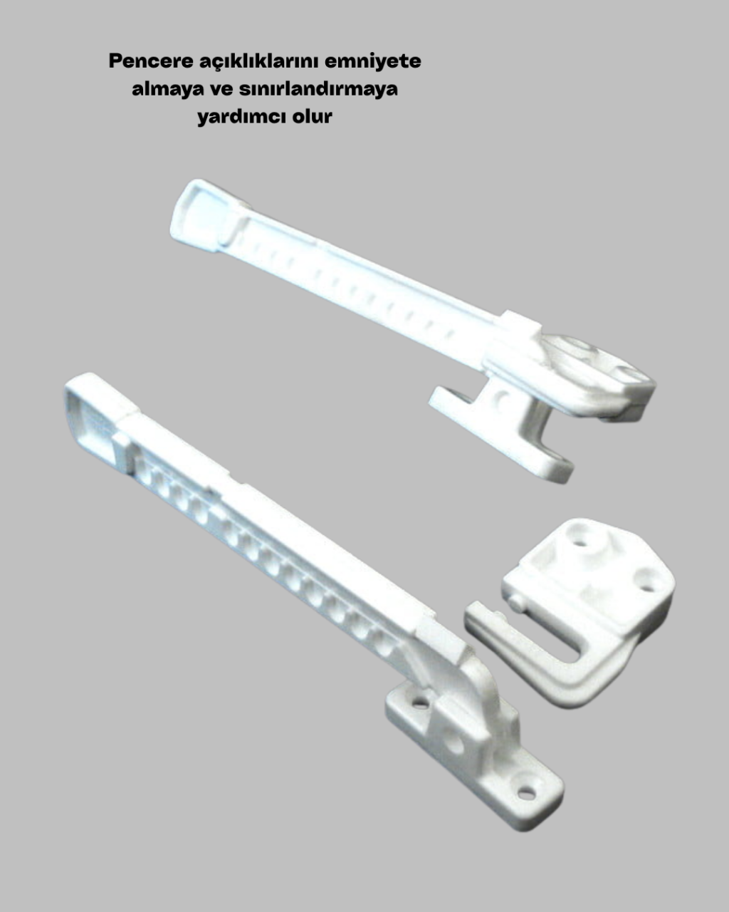 Pencere açılma kontrol aparatı, ev güvenliğini artırmak amacıyla tasarlanmıştır. Pencerenin belirli bir noktadan fazla açılmasını engelleyerek kontrollü havalandırma sağlar.Kompakt ve kullanışlı yapısı sayesinde pencere estetiğini bozmaz. Kolay montaj özelliği ile herkes tarafından rahatlıkla uygulanabilir. Paket içeriğinde 2 adet ürün bulunmaktadır.