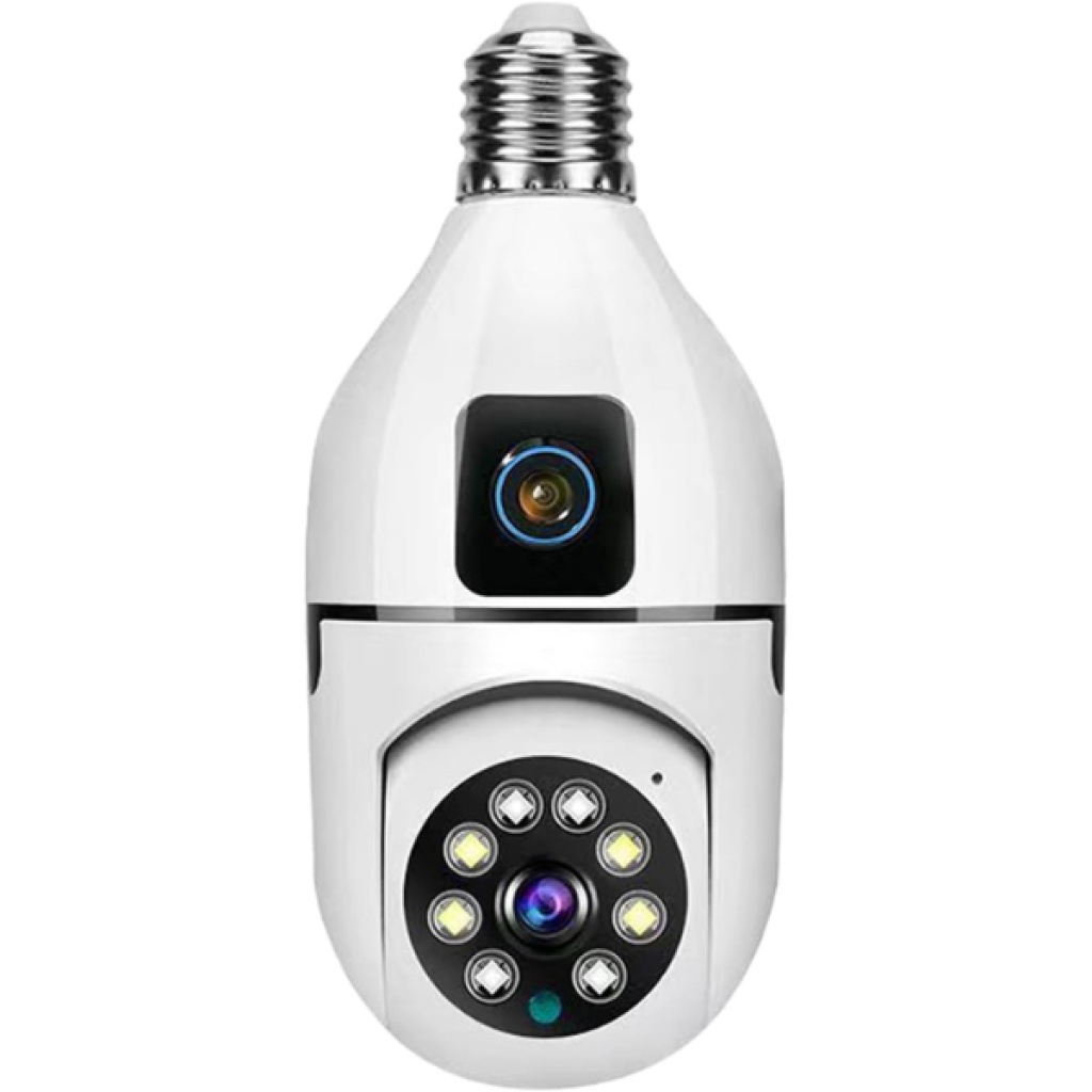 ÇİFT LENSLİ DUY GİRİŞLİ KABLOSUZ AMPUL KAMERAÜrün ÖzellikleriÇift lensli duy girişli kablosuz ampul kamera, pratik kurulumu ve gelişmiş güvenlik özellikleriyle dikkat çeker. E27 duy girişine kolayca monte edilerek ek adaptör gerektirmez. 4K Full HD çözünürlüğü ve 8 MP kamera kalitesi sayesinde net ve yüksek çözünürlüklü görüntüler sunar. 360° panoramik görüş açısı ile geniş alanları kapsar ve kör noktaları ortadan kaldırır.Gece görüş özelliğiyle düşük ışıkta dahi net kayıt alabilen kamera, hareket algılama özelliği sayesinde şüpheli durumlarda anında mesajlı bildirim gönderir. Çift yönlü ses desteği ile hem konuşabilir hem de ortam sesini dinleyebilirsiniz. Wi-Fi bağlantısı ile telefondan kolayca kontrol edilebilir. TF kart desteği ve video kayıt özelliği sayesinde görüntüler güvenli bir şekilde saklanabilir.Paket İçeriği1 adet Çift Lensli Duy Girişli Kablosuz Ampul Kamera