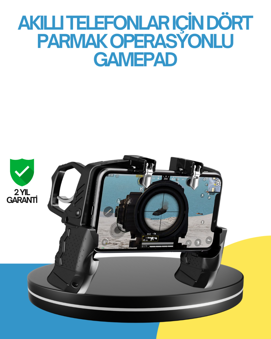 Dört parmakla çalışmayı destekleyen bu mobil gamepad, rekabetçi mobil oyunlarda daha hızlı ve kontrollü hareket etmek isteyen oyuncular için tasarlanmıştır. Ateş etme, atlama, çömelme, nişan alma, etkileşim ve uzanma gibi temel oyun hareketlerini aynı anda yapabilmenizi sağlar. Bu sayede ekrana bağımlı kalmadan daha akıcı ve profesyonel bir oyun deneyimi sunar.Ergonomik kavrama yapısı, avuç içine tam oturacak şekilde tasarlanmıştır. Uzun süreli oyun seanslarında el yorgunluğunu minimum seviyeye indirir ve konforlu bir tutuş sağlar. Dengeli ağırlığı ve el anatomisine uygun formu sayesinde kontrol hissi her an korunur.Orta boy düğme tasarımı, oyun sırasında ekran görüşünü engellemez. Bu özellik, özellikle FPS ve aksiyon türü oyunlarda çevresel farkındalığı artırır. Tetik mekanizması hassas çalışır ve komutlarınızı gecikme olmadan oyuna aktarır.Dayanıklı yapısı sayesinde uzun süreli kullanıma uygundur. Güvenli malzeme yapısı, cihazınızın ekranına zarar vermeden kullanım sağlar. Tetik temas noktaları kontrollü basınç uygular ve stabil bir performans sunar.Gerçekçi oyun hissi arayan mobil oyuncular için geliştirilen bu gamepad, reflekslerinizi daha etkin kullanmanıza yardımcı olur. Kompakt yapısı sayesinde kolay taşınır ve her ortamda profesyonel oyun deneyimini yanınızda taşımanızı sağlar.