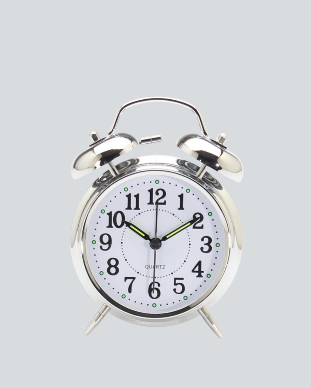 Gümüş Renkli Sessiz Işıklı Dekoratif Masa Üstü Çalar Saat Alarmlı