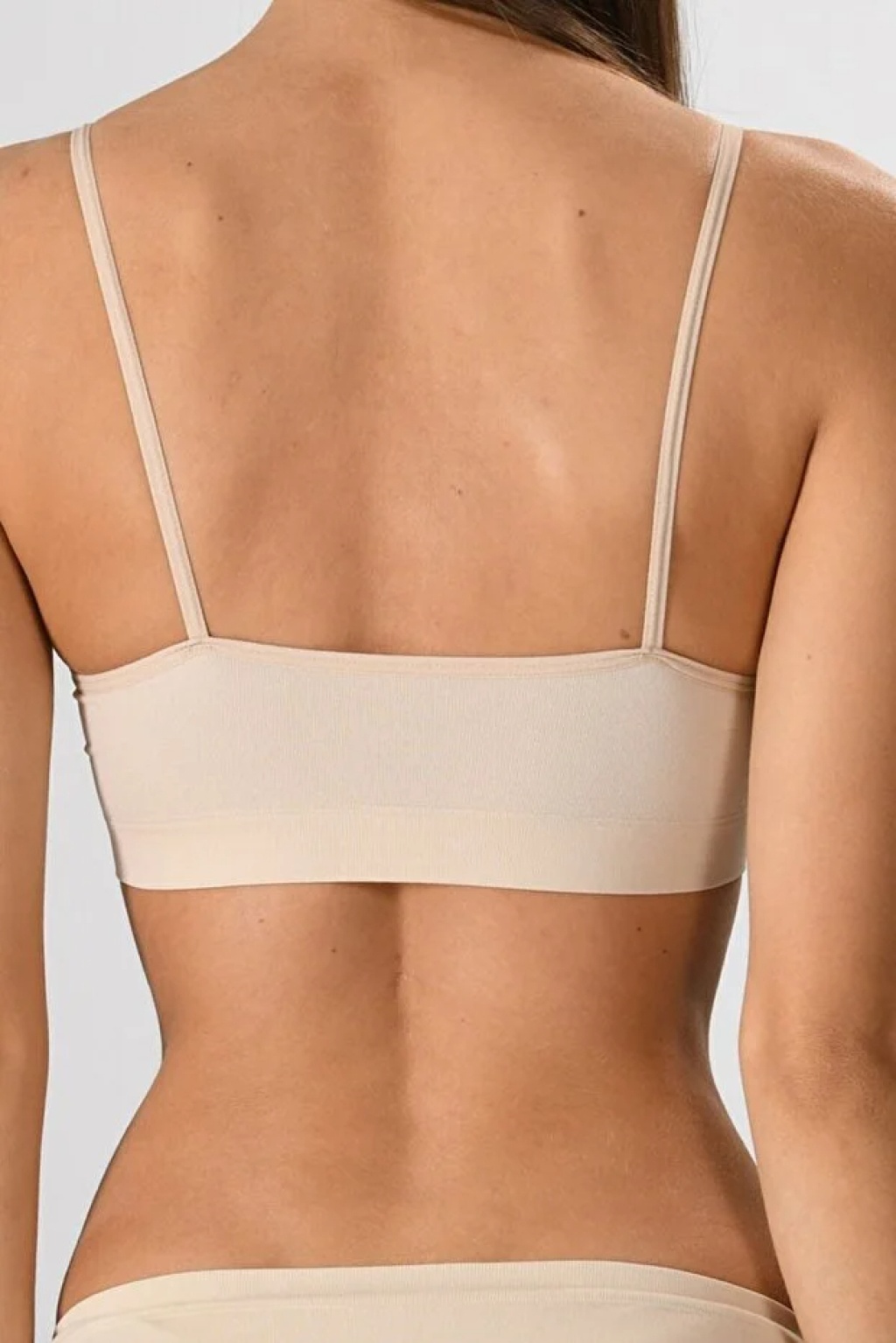 Kadın Beyaz Kalın Askılı Çıkarılabilir Pedli Örme Seamless Dikişsiz Basic Büstiyer