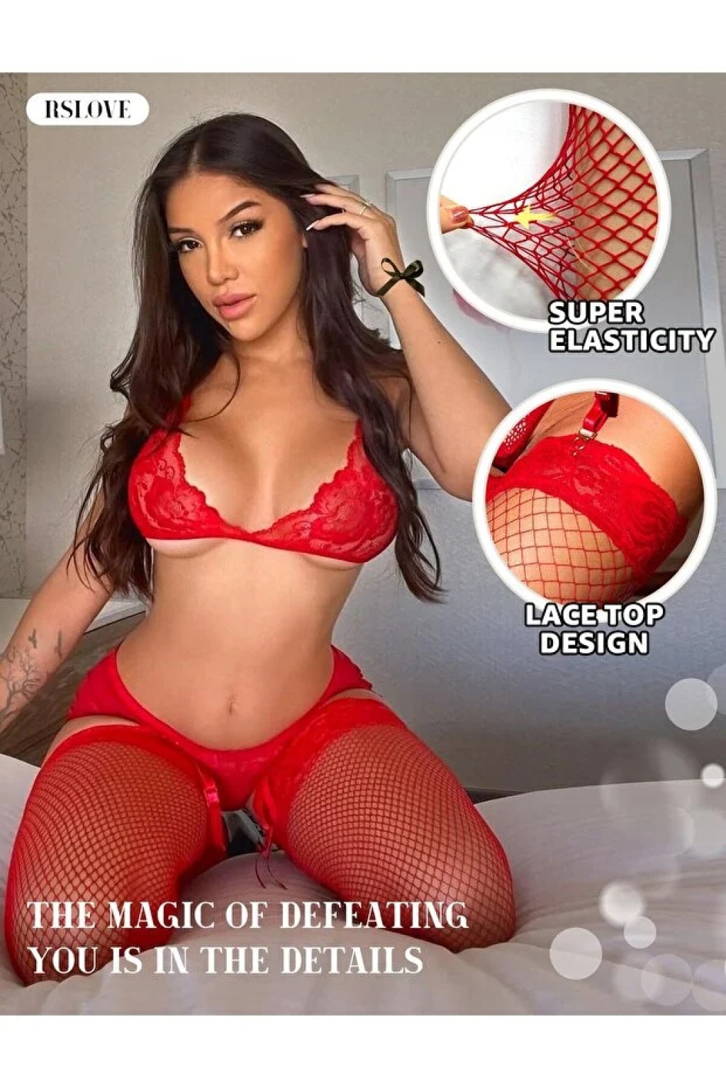 Kadın Kırmızı File Silikonlu Jartiyer Çorabı