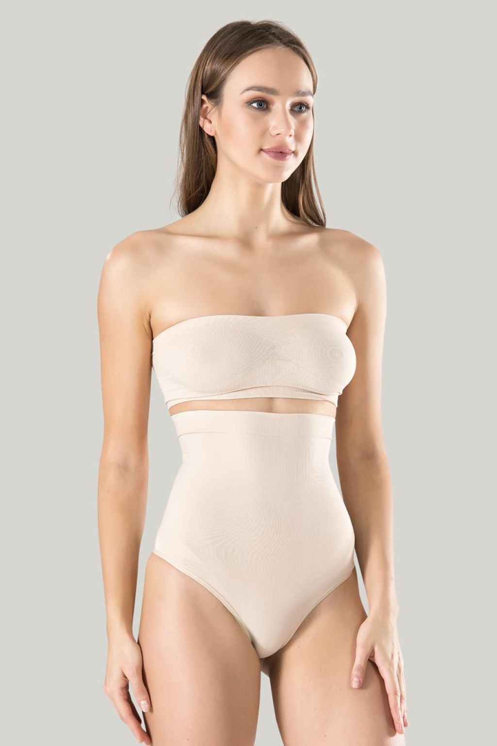 Kadın Ten Dikişsiz Eksta Yüksek Bel Silikon. Mideli String 1 Beden Inceltici Külot Korse
