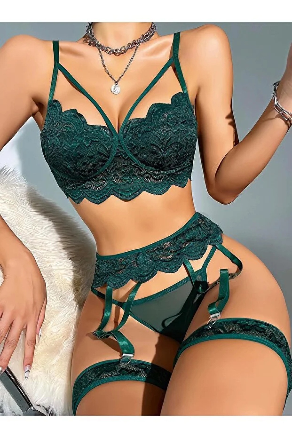 Kadın Yeşil Dantel Detaylı Jartiyer Takım