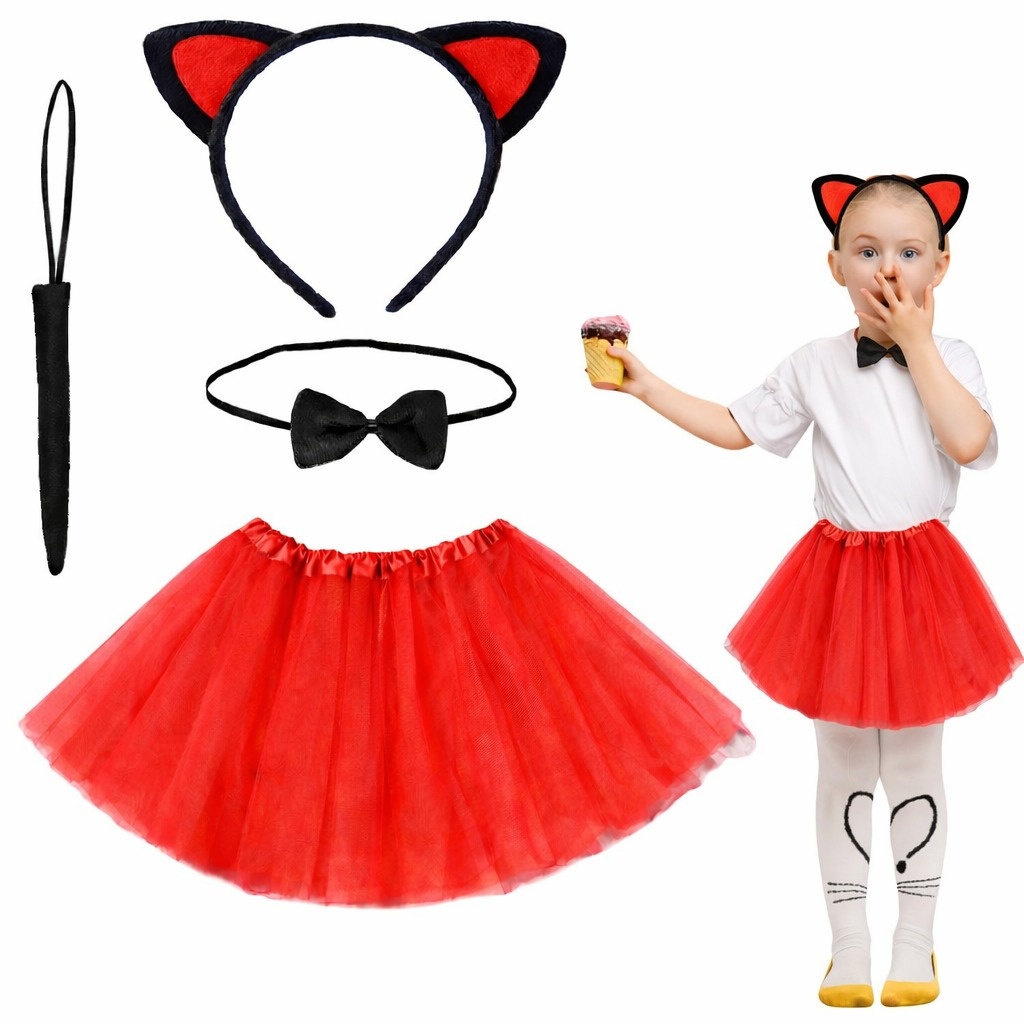 KIRMIZI RENK KEDİ KOSTÜM SETİ - TÜTÜ, TAÇ, PAPYON, KUYRUKÜrün ÖzellikleriKırmızı renk kedi kostüm seti, canlı rengi ve sevimli detaylarıyla kız çocuklarının kostüm etkinliklerinde enerjik ve dikkat çekici bir görünüm elde etmesini sağlar. Esnek yapısı sayesinde çocukların rahatça hareket edebilmesine imkân tanır ve standart beden ölçüsüyle farklı vücut yapılarına uyum gösterir. Kabarık tütü etek, kostüme hacimli ve eğlenceli bir siluet kazandırırken kedi kulaklı taç sevimli bir karakter ifadesi oluşturur. Papyon ve kuyruk detayları seti tamamlayarak bütünlüklü bir kedi konsepti sunar. Hafif ve çocuk uyumlu malzemeden üretilmiş olması, uzun süreli kullanımlarda rahatsızlık vermeden konfor sağlar. Doğum günü partileri, okul etkinlikleri, sahne gösterileri, kostüm organizasyonları ve fotoğraf çekimleri için ideal olan bu set, çocukların hayal gücünü destekler ve eğlenceli anlar yaşamalarına katkı sağlar. Kolay giyilip çıkarılabilen yapısı sayesinde pratik kullanım sunar ve farklı kombinlerle rahatlıkla uyum sağlar.Paket İçeriği1 adet Kırmızı Renk Kedi Kostüm Seti (Tütü + Taç + Papyon + Kuyruk)