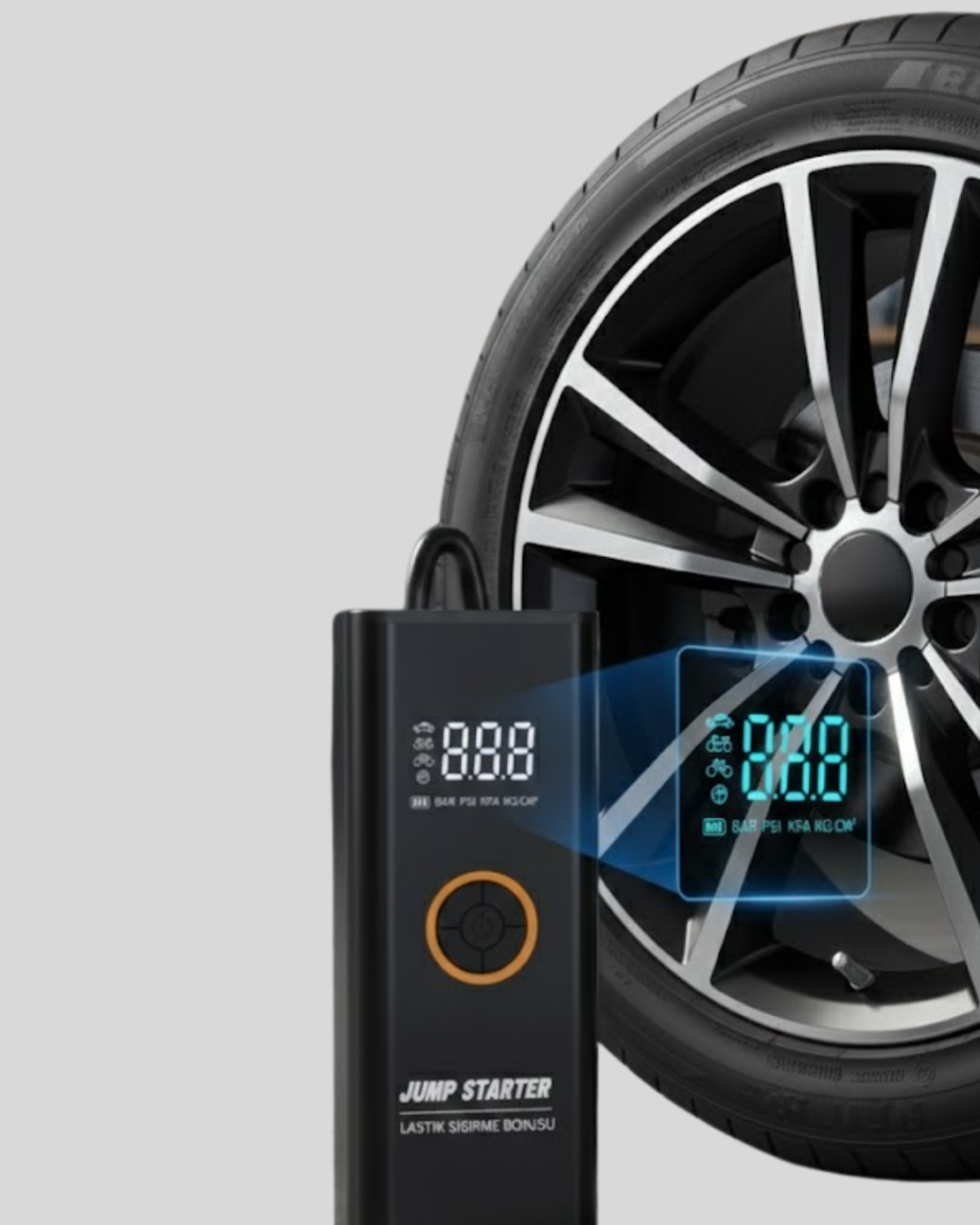 Sürüş güvenliğini artırmak ve acil durumlarda pratik çözümler sunmak amacıyla tasarlanan bu cihaz, birden fazla işlevi tek gövdede birleştirir. Akü takviye, dijital kompresör, LED fener ve powerbank özellikleri ile araç sahiplerinin ihtiyaç duyduğu temel çözümleri sunar.Akü takviye fonksiyonu sayesinde 12V araçlar hızlı şekilde çalıştırılabilir. Dijital hava kompresörü, 150 PSI’a kadar basınç desteği sunarak lastik şişirme işlemlerini kısa sürede tamamlar. Dijital ekran üzerinden basınç takibi yapılabilir ve otomatik durdurma özelliği güvenli kullanım sağlar.LED aydınlatma sistemi, karanlık ortamlarda kullanım kolaylığı sağlarken SOS modu ile acil durumlarda fark edilmenize yardımcı olur. Powerbank özelliği sayesinde mobil cihazlarınızı her an şarj edebilirsiniz.Kompakt, dayanıklı ve çok fonksiyonlu yapısıyla bu ürün; araç sahipleri için vazgeçilmez bir yol yardım çözümüdür.