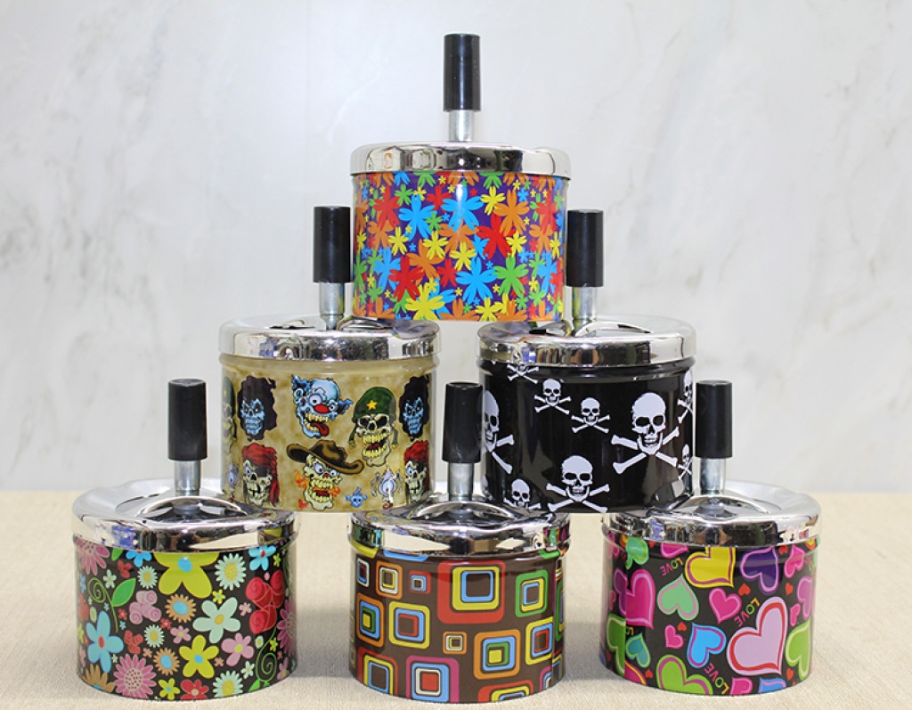 METAL RENKLİ BASMALI KÜLLÜK YUVARLAKÜrün ÖzellikleriMetal renkli basmalı yuvarlak küllük, dayanıklı metal malzemeden üretilmiştir ve uzun süreli kullanım için uygundur. 9x12 cm boyutundaki pratik ölçüleri sayesinde hem evde hem de dış mekânlarda kolayca kullanılabilir. Basmalı mekanizması ile izmaritleri iç kısma düşürerek kötü kokuların ve dağınıklığın önüne geçer. Çeşitli renkli desen seçenekleriyle üretilmiş olup, siparişlerde görseldeki modellerden karışık olarak gönderilir. Dekoratif görünüme sahip bu küllük, hem şıklık hem de fonksiyonellik sunar.Paket İçeriği1 adet Metal Renkli Basmalı Küllük Yuvarlak