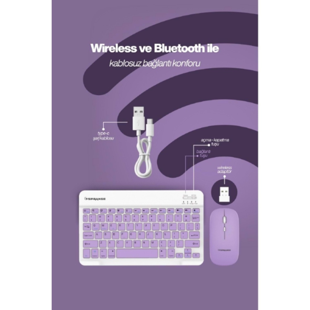 MOR KABLOSUZ KLAVYE VE MOUSE SETİÜrün ÖzellikleriMor Kablosuz Klavye ve Mouse Seti, modern tasarımı ve göz alıcı rengiyle çalışma alanına şık bir görünüm kazandırır. Kablosuz bağlantı teknolojisi sayesinde bilgisayar, telefon ve tablet gibi cihazlarla uyumlu bir kullanım sunar. Türkçe Q düzenindeki multimedya klavyesi yazı yazmayı kolaylaştırırken fonksiyon tuşlarıyla pratik ve hızlı erişim sağlar. Hem klavye hem de mouse üzerinde bulunan Type-C şarj girişleri hızlı ve güvenilir şarj imkânı sunarak uzun süreli kullanımda kesintisiz performans sağlar. Hafif ve kompakt yapısı kolay taşınabilirlik sağlarken ergonomik mouse tasarımı uzun süreli kullanımda bile elinizi yormadan rahat bir tutuş sunar. Estetik tasarımı ve güçlü bağlantı yapısı ile hem günlük kullanım hem de profesyonel çalışma ortamları için ideal bir settir.Paket İçeriği1 Adet Mor Kablosuz Klavye Ve Mouse Seti