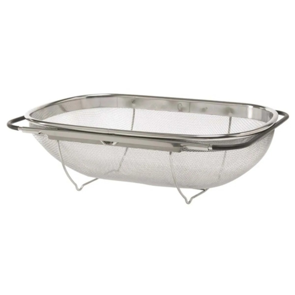 PASLANMAZ ÇELİK TELESKOPİK SÜZGEÇÜrün ÖzellikleriPaslanmaz çelik teleskopik süzgeç, meyve, sebze, makarna gibi yiyecekleri yıkamak veya süzmek için kullanılır. Dayanıklı paslanmaz çelik yapısı uzun ömürlüdür ve etkili süzme sağlar. İnce delikli tel örgü yapısı sayesinde küçük parçaların kaçmasını önler. Teleskopik açılıp kapanabilir yan kolları, süzgecin lavabo üzerine kolayca yerleştirilmesini sağlar ve farklı lavabo genişliklerine uyum gösterir. Süzgeç, katlanabilir ayakları sayesinde yerden yükseltilerek daha hijyenik kullanım sunar. Hem ev tipi mutfaklar hem de profesyonel mutfaklar için uygundur.Paket İçeriği1 Adet Paslanmaz Çelik Teleskopik Süzgeç