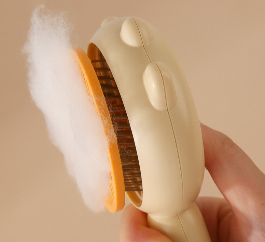 PATİ TASARIMLI OTOMATİK TEMİZLENEN EVCİL HAYVAN TARAĞIÜrün ÖzellikleriPati tasarımlı otomatik temizlenen evcil hayvan tarağı, kedi ve köpeklerin tüy bakımını pratik, hızlı ve konforlu hale getirmek için tasarlanmıştır. Ergonomik sapı sayesinde ele rahat oturur ve tarama sırasında kontrolü artırarak hem evcil hayvanın hem de kullanıcının konforunu ön planda tutar. Tarak arkasında bulunan pratik düğme mekanizması, tarama sırasında toplanan tüylerin saniyeler içinde yüzeye itilmesini sağlar ve tek hamlede temizlenmesine imkân tanır. Bu özellik sayesinde tarak üzerinde biriken tüylerle uğraşmadan hijyenik ve zahmetsiz bir kullanım sunar. Yuvarlatılmış tarak uçları, cilde zarar vermeden nazikçe tarama yaparak ölü tüylerin, tozun ve kirin etkili şekilde toplanmasına yardımcı olur. Düzenli kullanımda tüy dökülmesini azaltmaya destek olurken, evcil hayvanın tüylerinin daha bakımlı ve parlak görünmesine katkı sağlar. Günlük bakım rutini için uygun olan bu tarak, ev ortamında kolay kullanım sunar ve evcil hayvan sahipleri için vazgeçilmez bir bakım ürünüdür.Paket İçeriği1 adet Pati Tasarımlı Otomatik Temizlenen Evcil Hayvan Tarağı