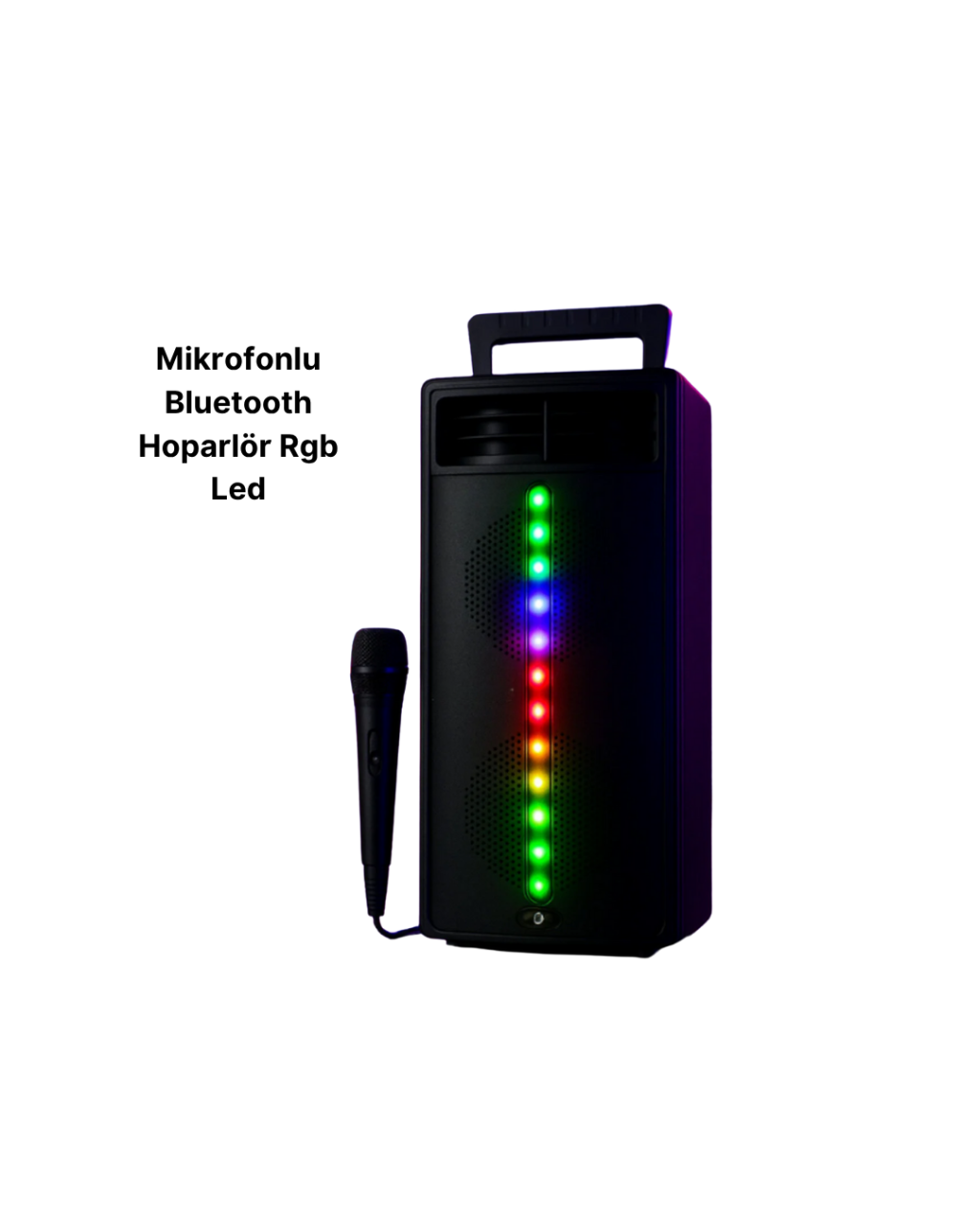 Siyah gövdesi ve parlak yüzeyiyle hem modern hem şık bir görünüme sahiptir. Üzerindeki kolay kontrol tuşları sayesinde sesi, modu ve ışıkları rahatlıkla ayarlayabilirsiniz. Her yaştan kullanıcı için pratik bir tasarıma sahiptir. Evde, ofiste veya dış mekânda kullanabileceğiniz bu hoparlör, güçlü ses kalitesi ve göz alıcı ışıklarıyla her ortama enerji katar.