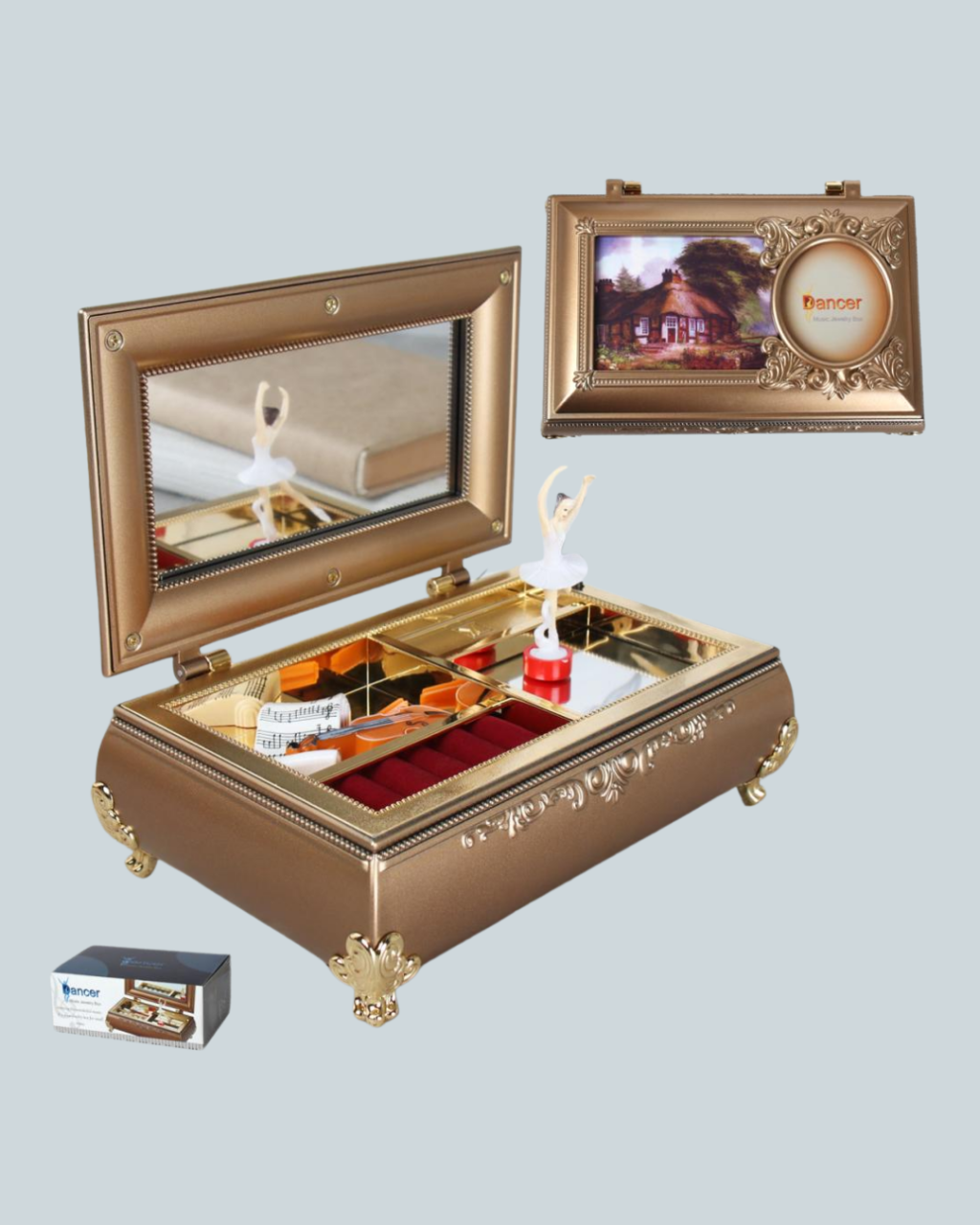 Balerinli müzikli takı kutusu, piyanoyu andıran benzersiz tasarımıyla dikkat çeken dekoratif ve fonksiyonel bir üründür. Estetik görünümüyle ilk bakışta büyüleyen bu model, müzik eşliğinde sergilenen balerin figürüyle özel bir atmosfer oluşturur. Ürün, fırın boya uygulaması sayesinde dayanıklı ve kaliteli bir yüzeye sahiptir. Üzerindeki renkler canlı, parlak ve uzun süre solmadan kullanılabilir yapıdadır.Takı kutusunun kapağı açıldığında iç bölümde farklı aksesuarların yerleştirilebileceği düzenli bölmeler bulunur. Bu bölmeler yüzük, küpe, kolye ve bileklik gibi küçük takıların düzenli biçimde saklanmasını sağlar. Kullanıcılar hem estetik bir kutuya sahip olur hem de takılarını kaybolmadan toparlayabilecekleri bir alan elde eder.Balerin figürü müzik çaldığında sergilediği zarif görüntüyle çocuklar ve yetişkinler için büyüleyici bir deneyim sunar. Müzik kutusunun melodisi sakin ve hoş bir tonda olduğu için izleyen kişiye huzur verir. Çocuk odalarında dekoratif bir obje olarak kullanılabilir; genç kız odalarında ise hem estetik hem işlevsel bir aksesuar görevi görür.Doğum günleri, özel gün kutlamaları ve hediyeleşmelerde tercih edilen bir üründür. Kız çocukları için hem eğlenceli hem romantik bir hediye niteliği taşır. Aynı zamanda koleksiyon seven yetişkinler için de nostaljik bir parçadır.Piyano formundaki dış tasarım ve parlak yüzey, ürünü klasik dekorasyonlara da uyumlu hale getirir. Kullanıcılar bu ürünü masa üstünde, makyaj köşesinde, komodin üzerinde ya da vitrinlerde estetik bir obje olarak sergileyebilir.Balerinli müzikli takı kutusu, romantik ruhu, düzen sağlama işlevi ve estetik görünümü sayesinde yaşam alanlarına zarafet ve mutluluk katan özel bir üründür.