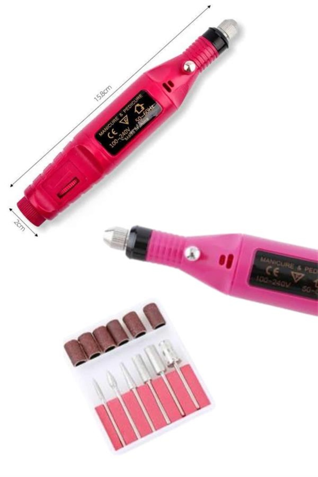 Elektrikli Manikür-Pedikür-Törpü MakinesiEvde kolayca manikür ve pedikür yaparak tırnaklarınızı kuaförden çıkmış gibi bakımlı hale getirebilirsiniz. Bu set, mükemmel tırnak bakımını sadece birkaç adımda gerçekleştirmenize olanak sağlar. Hem kendiniz hem de sevdikleriniz için harika bir hediye seçeneği!Ergonomik ve Konforlu TasarımHafif ve rahat tutuş sağlamak için kalem şeklinde tasarlanmış olan makine, uzun süreli kullanımda bile ellerinizi yormaz. Düşük gürültü seviyesi ve titreşimsiz çalışma özellikleri ile konforlu bir tırnak bakımı deneyimi sunar.Zengin Aksesuar Seti ile Profesyonel SonuçlarPaket içeriğinde yer alan 6 adet metal uç ve 6 adet zımpara bantları ile tırnaklarınızı şekillendirebilir, manikür ve pedikür işlemlerinizi profesyonel bir şekilde gerçekleştirebilirsiniz. Bu geniş aksesuar yelpazesi, her ihtimale göre mükemmel sonuçlar elde etmenizi sağlar.Değişken Hız KontrolüMakine, 3000 ile 20000 RPM arasında değişken hız seçenekleri sunar. Hızlı veya yavaş hız ayarlarını ihtiyacınıza göre seçebilir, tırnak bakımınızı kişiselleştirebilirsiniz.Evde Profesyonel Manikür ve PedikürSalon kalitesinde bir tırnak bakımı için ideal olan bu elektrikli cihaz, evde kolayca kullanabileceğiniz profesyonel bir üründür. Bakım rutininizi geliştirin ve zamandan tasarruf edin!