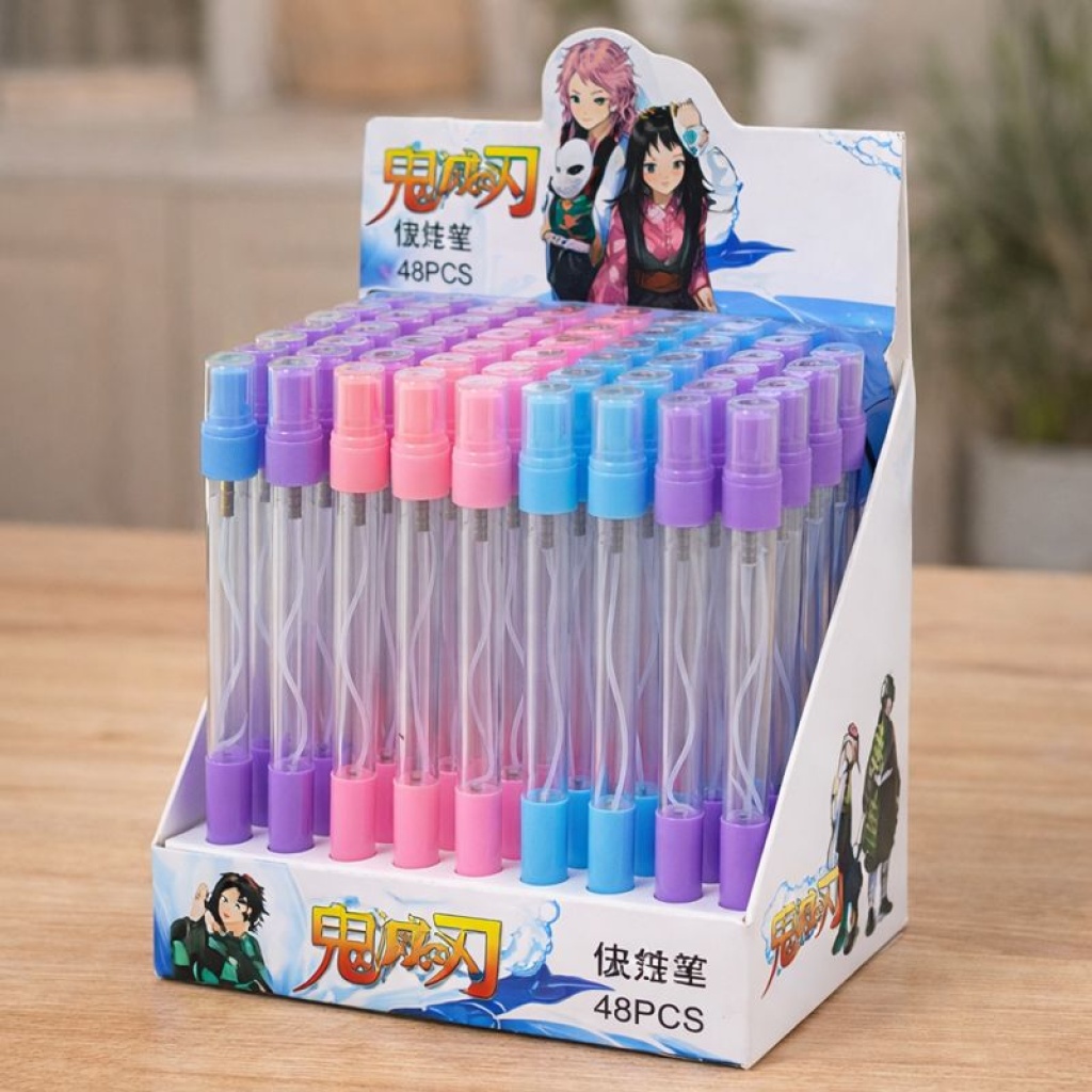 SPREY HAZNELİ TÜKENMEZ KALEM Ürün ÖzellikleriSprey hazneli tükenmez kalem, yazı yazmanın yanı sıra hijyenik kullanım avantajı sunan pratik bir üründür. Üst kısmında bulunan hazneye kolonya veya dezenfektan doldurularak günlük kullanımda hijyen sağlamaya yardımcı olur. İnce uçlu yapısı ile düzgün, kesintisiz yazım sağlar. Şeffaf gövde tasarımı ve renkli kapak detayları sayesinde çocuklar ve gençler tarafından ilgiyle kullanılabilir. Özellikle okulda, çantada veya ofis ortamında hem yazım hem de sprey işleviyle çift yönlü kullanım sunar. Renkler karışık olarak gönderilmektedir.Paket İçeriği1 Adet Sprey Hazneli Tükenmez Kalem