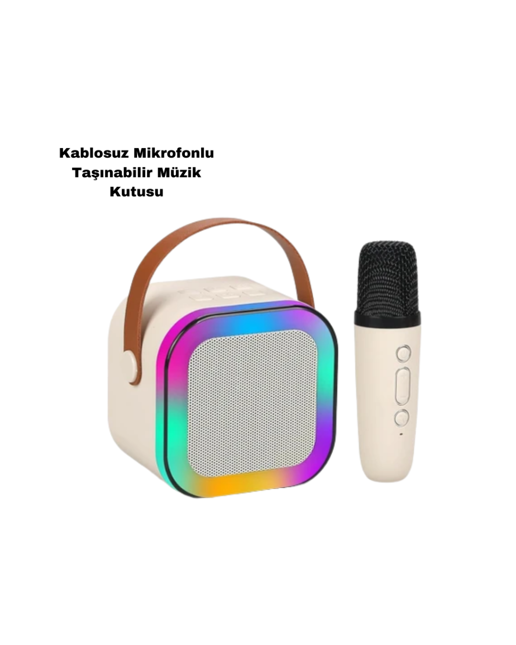 Karaoke mikrofon hoparlör seti, müzik ve eğlenceyi bir arada sunan pratik bir settir. Yüksek kaliteli hoparlör ve mikrofon yapısı sayesinde ses netliği ve performans ön plandadır. Evde ve dış mekânda kullanıma uygundur.Bluetooth kablosuz bağlantı özelliği sayesinde cihazlarınıza kolayca bağlanabilirsiniz. 10 metrelik etki mesafesi, performans sırasında özgür hareket etmenizi sağlar. Ses kontrol düğmeleri ile ses seviyesini rahatça ayarlayabilirsiniz.10–20W çıkış gücü ve 75 dB ses oranı ile dengeli ve güçlü ses performansı sunar. Lityum pil teknolojisi sayesinde tek şarjla yaklaşık 6 saat kesintisiz kullanım imkânı sağlar.Taşınabilir ve kompakt tasarımı, ürünü her ortamda kullanıma uygun hale getirir. Şarj edilebilir pil yapısı, kullanım kolaylığı sunar.Paket içeriğinde 1 adet hoparlör, 1 adet mikrofon ve 1 adet şarj kablosu bulunmaktadır. Eğlenceyi her yere taşımak isteyenler için ideal bir karaoke setidir.