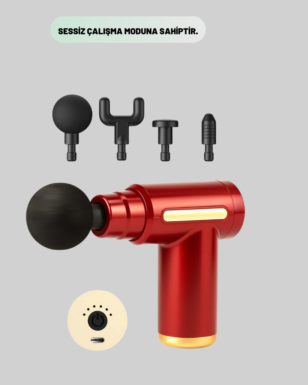 Elektrikli masaj tabancası, kas sağlığını desteklemek ve günlük yorgunluğu azaltmak amacıyla tasarlanmıştır. Farklı vücut bölgelerine uyum sağlayan yapısı sayesinde çok yönlü bir masaj deneyimi sunar. Ergonomik tasarımı, kullanım sırasında bilek ve el yorgunluğunu azaltarak konforlu bir deneyim sağlar.6 kademeli hız ayarı, masaj şiddetinin kontrollü şekilde ayarlanmasına olanak tanır. Hafif seviyeler gevşeme odaklı kullanım sunarken, yüksek seviyeler yoğun titreşimlerle kas dokusuna daha derin etki eder. Sessiz çalışma özelliği sayesinde dikkat dağıtmadan kullanılabilir.4 başlıklı masaj sistemi, cihazın farklı ihtiyaçlara cevap vermesini sağlar. Yuvarlak başlık genel kas gevşetme için idealdir. U başlık, omurga çevresinde güvenli masaj sağlar. Düz başlık, geniş kas yüzeylerinde etkili sonuçlar sunar. Nokta başlık ise yoğun ve hedefli masaj uygulamaları için tercih edilir.Şarjlı pil yapısı, kablosuz kullanım avantajı sunarak hareket özgürlüğü sağlar. Kompakt boyutları sayesinde çantada kolayca taşınabilir. Evde, spor salonunda veya ofiste kullanım için uygundur. Spor sonrası kas gevşetme, günlük rahatlama ve kas bakım rutini için pratik bir çözümdür. Masaj tabancası, kas sertliğini azaltmaya ve kan dolaşımını desteklemeye yardımcı olarak daha dinç bir his sağlar.