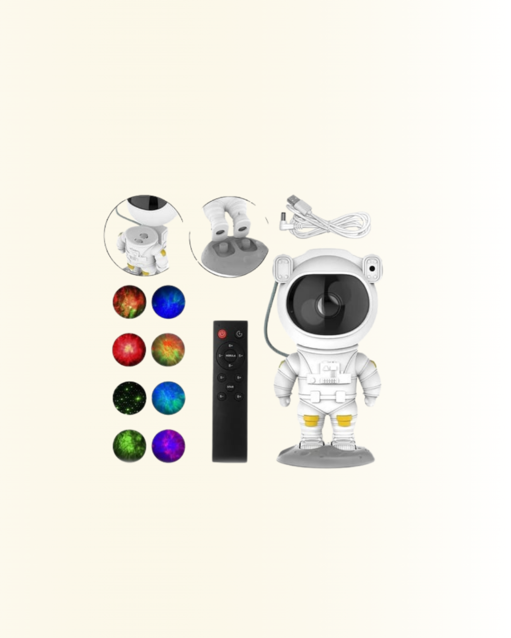 Astronot Projeksiyon Lambası, odanızı adeta bir galaksiye dönüştüren eşsiz bir dekorasyon ve aydınlatma çözümüdür. Nebula, yıldız ve ay projeksiyonlarını dilediğiniz hız ve parlaklıkta ayarlayabilir, bu üç efekti birlikte veya ayrı ayrı kullanarak farklı atmosferler oluşturabilirsiniz. Bluetooth bağlantısı sayesinde telefon, tablet veya bilgisayarınızdan müzik çalabilir, dahili ses seçenekleri (kuş cıvıltısı, dalga sesi, şömine ateşi, uyku müziği) ile huzur verici bir ortam yaratabilirsiniz. Özellikle meditasyon, yoga, uyku öncesi rahatlama veya romantik bir atmosfer için idealdir. Ayarlanabilir projeksiyon açısı ile ışığı istediğiniz yöne yansıtabilir, 45 ve 90 dakikalık zamanlayıcı modları ile otomatik kapanma özelliğini kullanabilirsiniz. 5V/1A USB güç kaynağı ile çalışan bu cihaz, enerji tasarruflu ve çevre dostu bir yapıya sahiptir. ABS, PC, PVC ve TPE malzemelerden üretilmiş olup uzun ömürlü kullanım sağlar. Paket içeriğinde projeksiyon lambası, taban, USB kablosu, uzaktan kumanda ve kullanım kılavuzu bulunur (piller hariçtir). Çocuk odasından oturma odasına, kamp alanlarından parti ortamlarına kadar birçok yerde kullanılabilir. Hem dekoratif hem de fonksiyonel yapısıyla evinize görsel bir şölen katmak isteyenler için mükemmel bir tercihtir.