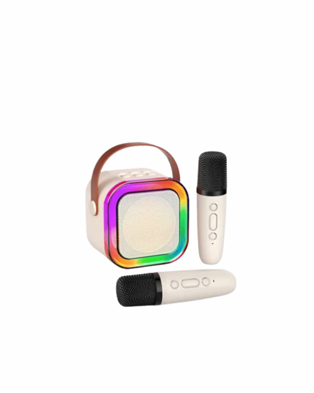 Bu taşınabilir karaoke hoparlör, yüksek ses kalitesi ve kullanışlı tasarımı ile her yaştan kullanıcıya hitap ediyor. Dahili ses sürücüleri sayesinde sesler net ve güçlü şekilde iletilir. Hem müzik dinlemek hem de karaoke yapmak için ideal bir ürün. Ürünle birlikte gelen iki adet mikrofon sayesinde ister tek başınıza ister arkadaşlarınızla birlikte eğlenebilirsiniz. Bluetooth 5.0 teknolojisi sayesinde cihazınızla saniyeler içinde eşleşir ve müzik keyfi başlar. Ayrıca USB ve AUX girişleri sayesinde farklı kaynaklardan da müzik çalabilirsiniz. Renkli LED ışıkları ortama enerji katar ve eğlencenize görsellik kazandırır. Type-C şarj girişi ile hızlıca şarj olur, uzun süre kullanım sağlar. Hafif yapısı ve taşıma sapı sayesinde her yere kolayca götürülebilir.