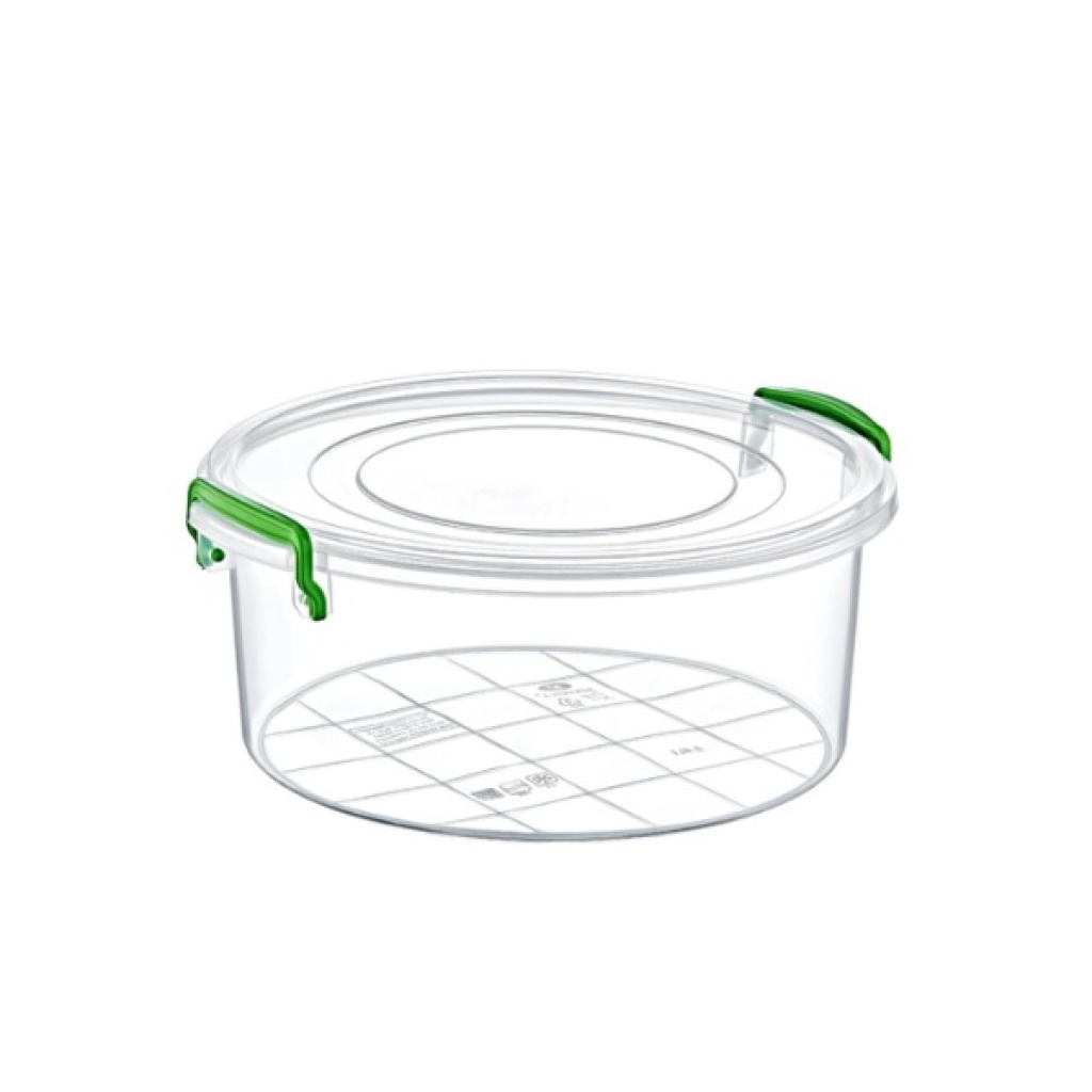 YUVARLAK SAKLAMA KUTUSU 2.4 LİTREÜrün ÖzellikleriŞeffaf tasarımı ve pratik kullanım kolaylığı ile öne çıkan Yuvarlak Saklama Kutusu 2.4 Litre, mutfakta hem düzeni korur hem de gıdalarınızı uzun süre taze tutar. 9x22,5 cm boyutundaki geniş hacmi sayesinde kuru gıdalardan atıştırmalıklara kadar pek çok ürünü rahatça muhafaza etmenizi sağlar.Dayanıklı, BPA içermeyen plastikten üretilen bu saklama kabı, gıda temasına uygundur ve sağlığınızı korur. Yeşil klipsli kapağı, hava ve sıvı geçirmez özelliğiyle yiyeceklerin tazeliğini maksimum seviyede tutar. Şeffaf gövde yapısı sayesinde içerideki ürünü kolayca görebilir, kullanım kolaylığı elde edebilirsiniz.Yuvarlak formu sayesinde buzdolabı, mutfak dolabı veya tezgâh üzerinde düzenli bir görünüm sağlar. Hafif yapısı ile taşınabilir ve kolay temizlenebilir. Ev, ofis veya piknik gibi her ortamda kullanıma uygundur.Paket İçeriği1 adet 2.4 litrelik yuvarlak saklama kutusu
